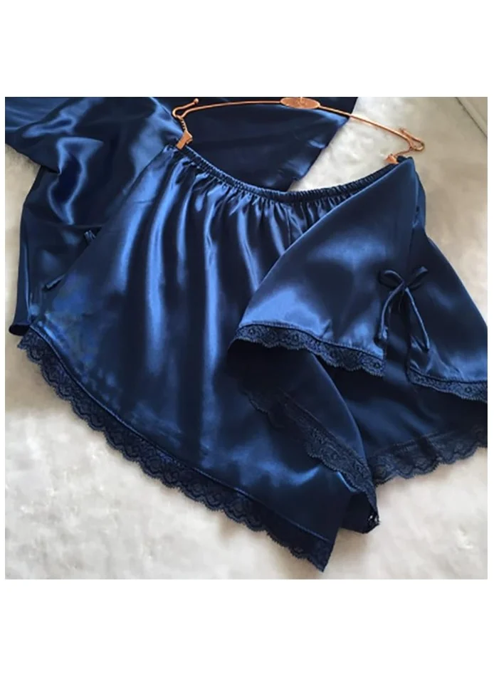 V-Neck Silk Women’s Pajama Set with Spaghetti Straps and Lace Detailing